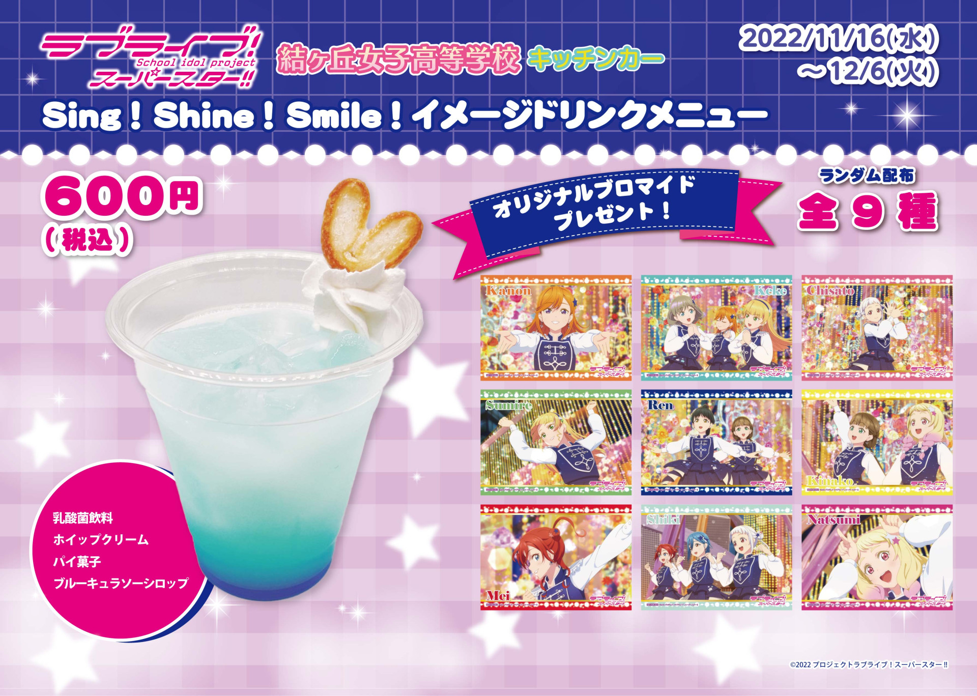 11月16日(水)~12月6日(火)の期間でTVアニメ「ラブライブ!スーパースター!!」 2期第10話挿入歌『Sing!Shine!Smile!』をイメージしたドリンクが新登場します!