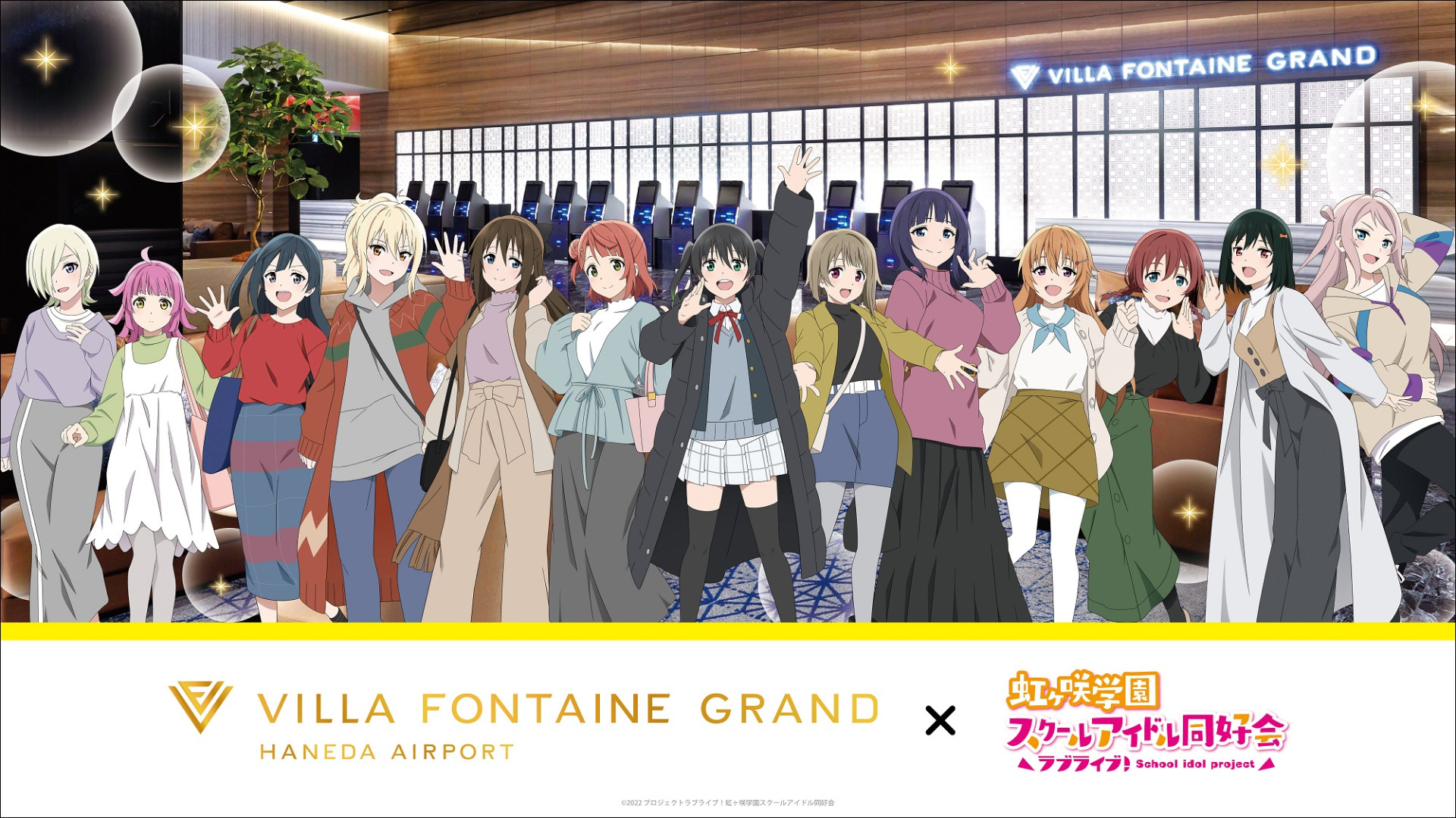 映画館を楽しむニジガクメンバーの描き下ろしイラストを使用したニジガクメンバースタンディがユナイテッド・シネマ アクアシティお台場にて登場中!