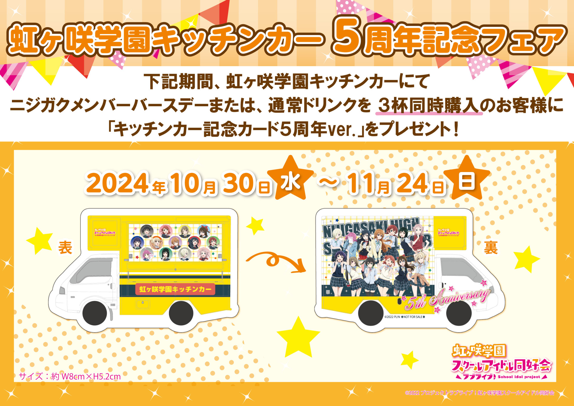 下記期間でバースデー記念ドリンクメニューの販売、記念ドリンク購入者様への特典ブロマイドお渡し、バースデーボードの展示をいたします。