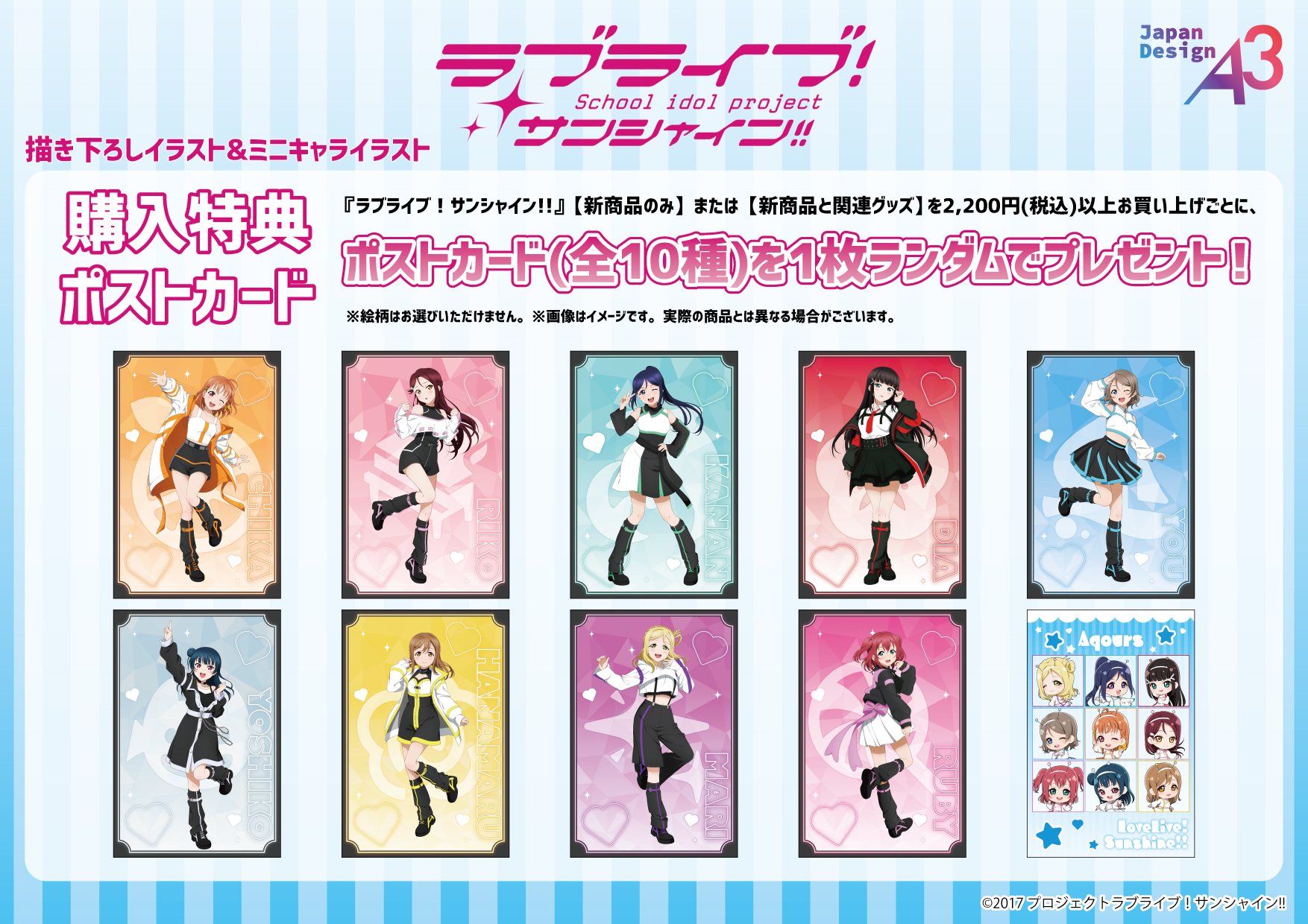 『ラブライブ!サンシャイン!!』関連商品を2,200 円(税込)お買い上げごとに特典ポストカードをランダムで1 枚プレゼント!