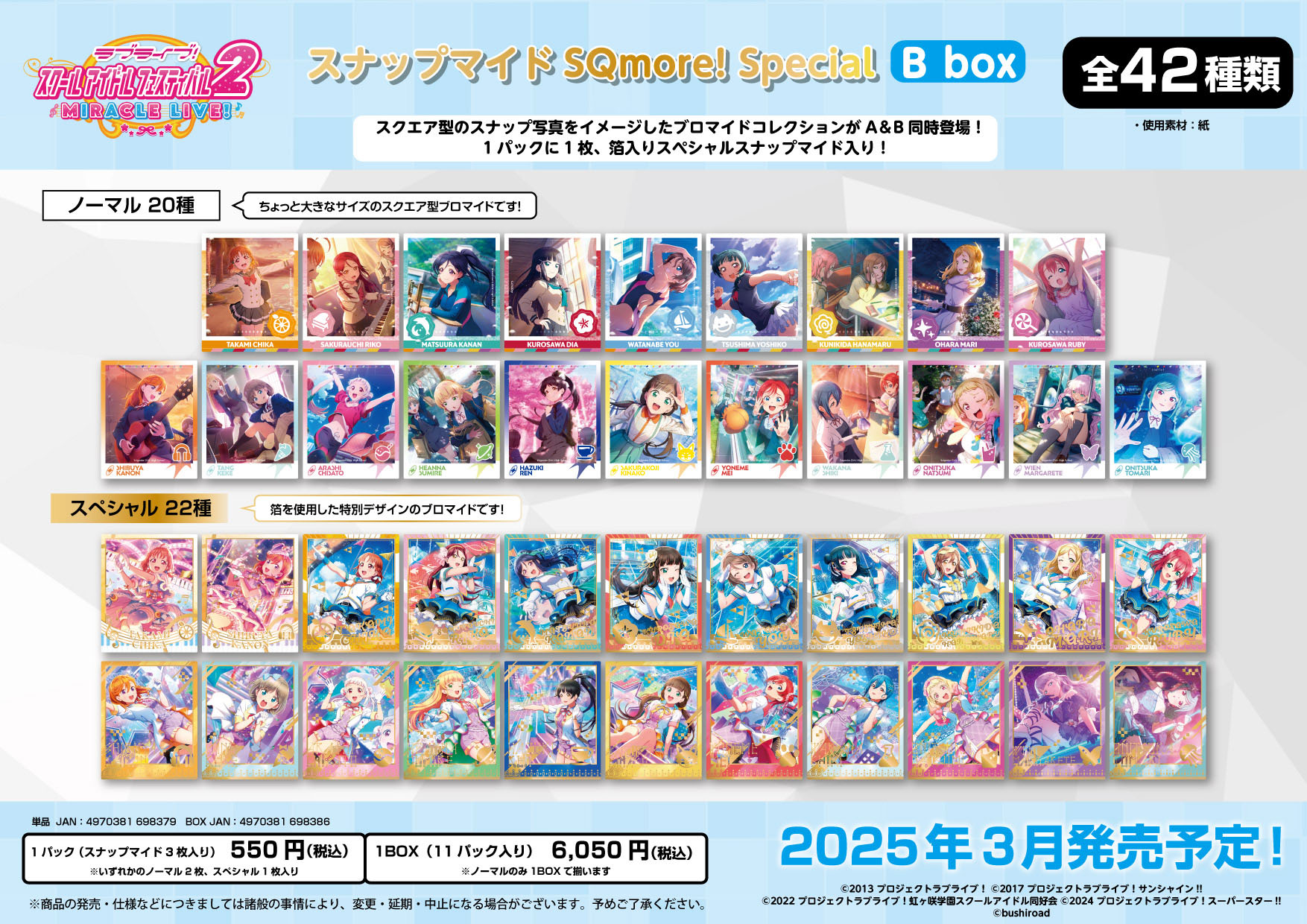 「μ’s」と「虹ヶ咲学園スクールアイドルクラブ」を収録したA box、「Aqours」と「Liella!」を収録したB box同時発売です!