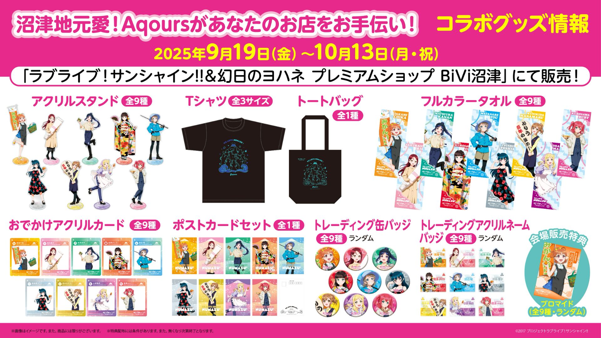 ※コラボ期間中のコラボグッズの販売は上記『ラブライブ!サンシャイン!!&幻日のヨハネ プレミアムショップ』BiVi沼津のみとなります。