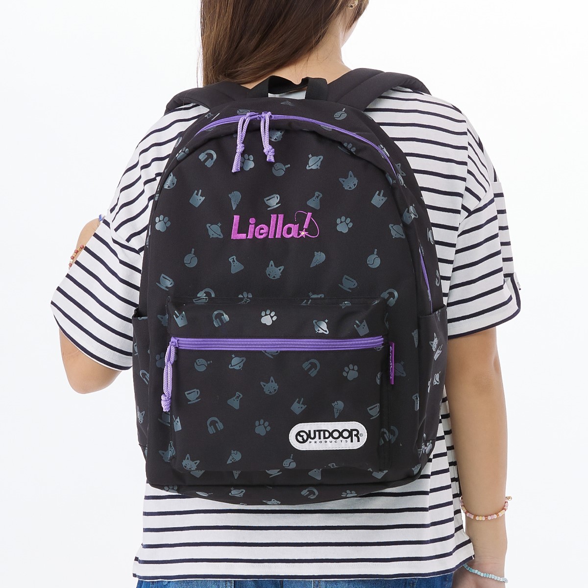 正面に『Liella!』の文字が刺繍で表現されています。パープルのファスナーがかわいいデザインです。