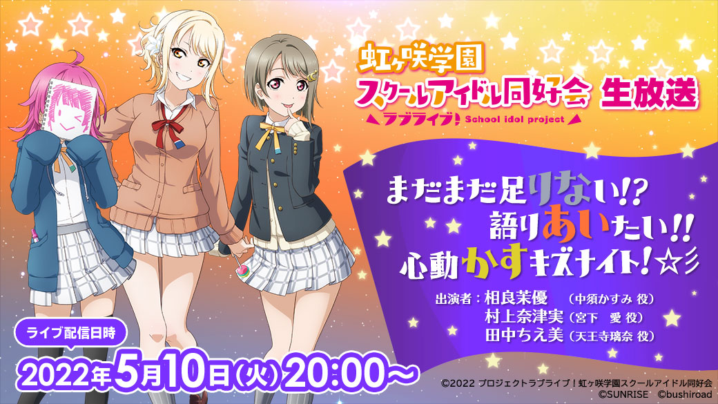 「ラブライブ!虹ヶ咲学園スクールアイドル同好会生放送 まだまだ足りない!?語りあいたい!!心動かすキズナイト!☆彡」のお知らせ