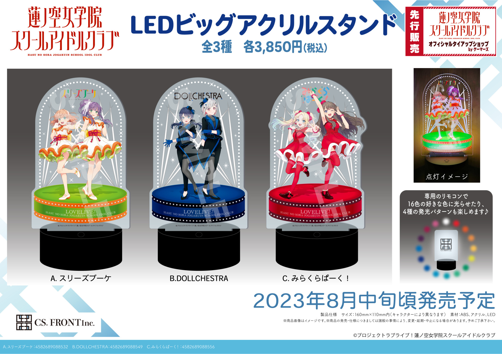 ラブライブ!シリーズPremiumShopより、ラブライブ!蓮ノ空女学院スクールアイドルクラブ商品販売のお知らせ